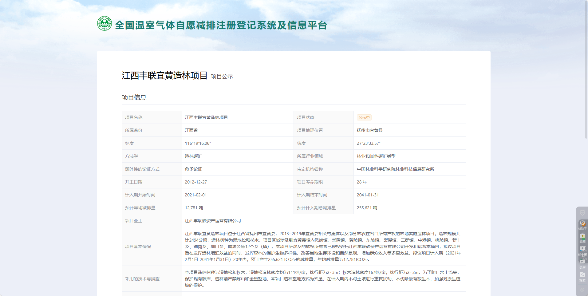 12月27日,由撫州市農(nóng)發(fā)集團開發(fā)的宜黃縣林業(yè)碳匯項目成功列入CCER造林碳匯項目公示名單。
